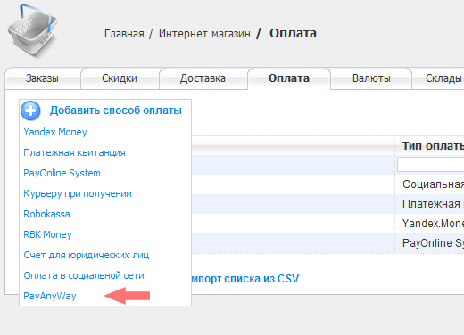 UMI.CMS интегрирована с платёжной системой PayAnyWay.