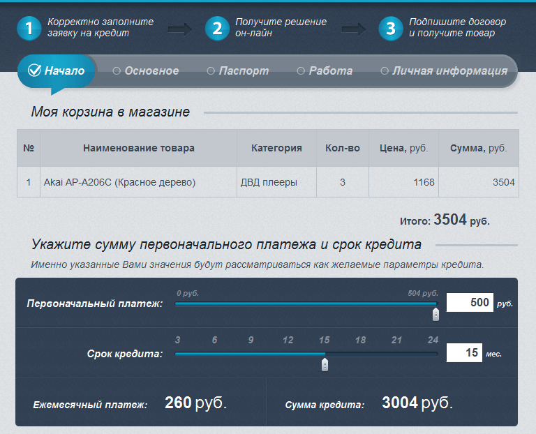 Данная система — новое платежное решение для совершения быстрых покупок в интернете. Это позволит интернет-магазинам на UMI.CMS увеличить прибыль за счет продажи товаров в кредит. Чтобы начать использовать систему, владельцу магазина необходимо подписать договор с банком и активировать новый способ оплаты в модуле «Интернет-магазин». После этого посетителям сайта станет доступно оформление заказов в кредит на сумму от 3000 рублей. Оформление кредита осуществляется через удобный виджет банка, в котором покупатель самостоятельно выбирает условия кредитования.