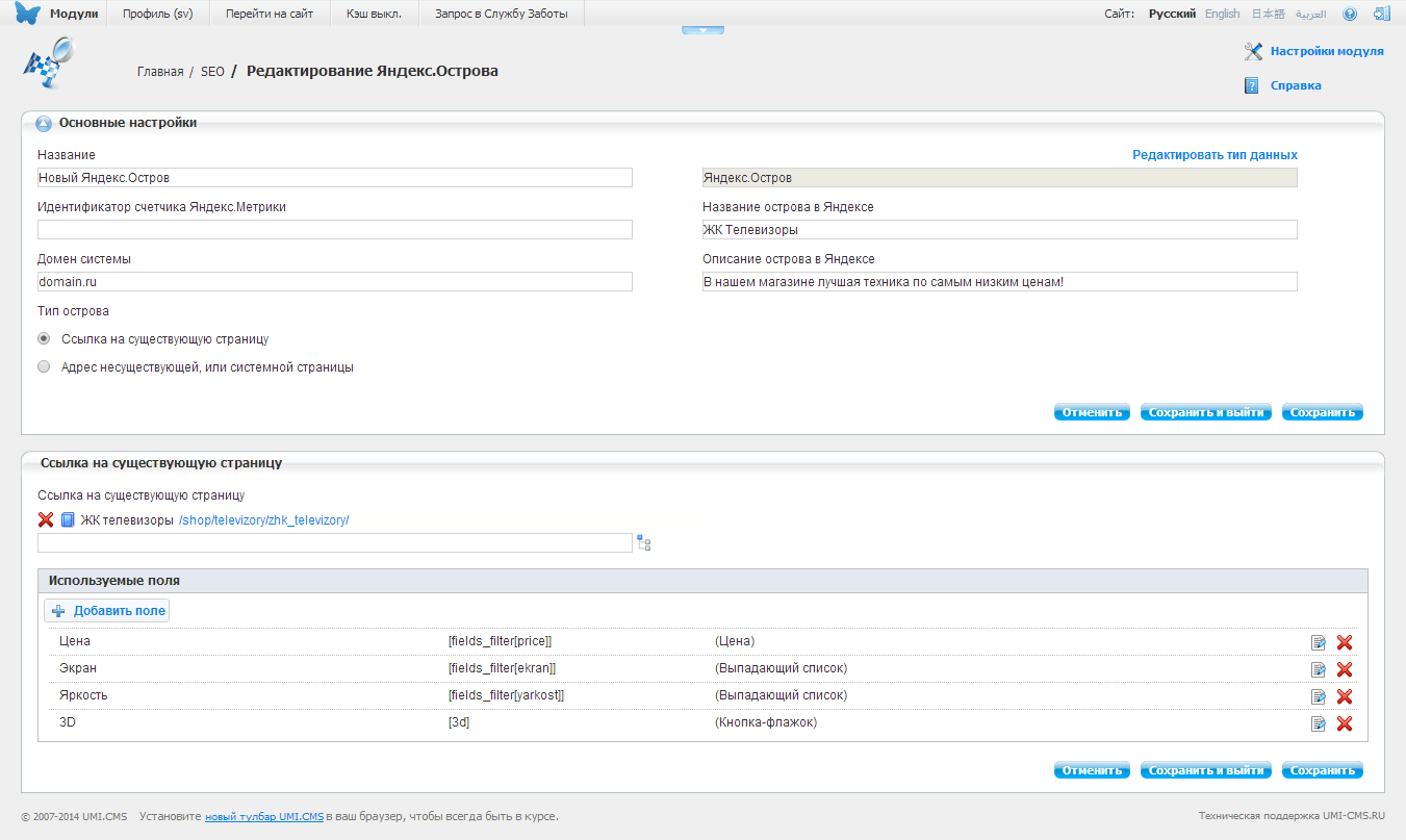 Яндекс.Острова — новый вид поисковой выдачи «Яндекс», который позволяет улучшить представление сайта в результатах поиска. Чтобы создать «остров» достаточно выбрать страницу вашего сайта, на которой есть фильтр, и отсортировать поля для фильтрации в том порядке, котором они должны быть показаны в «Яндекс».