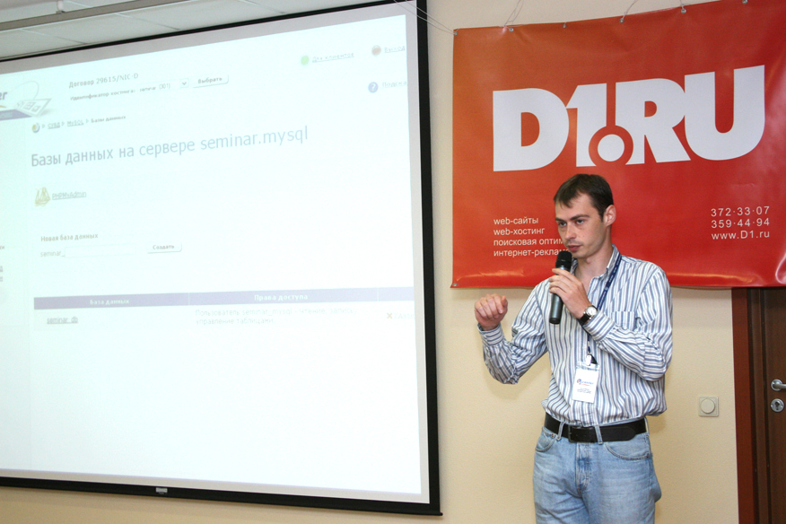 25 июля 2008 в Екатеринбурге прошел семинар "Все, что нужно знать при создании сайта компании - от хостинга до продвижения". Мероприятие мы проводили совместно с компанией RU-CENTER и нашими партнерами в Екатеринбурге студией D1.RU. Семинар был ориентирован на представителей коммерческих компаний, которые заинтересованы в создании, улучшении и продвижении своего корпоративного сайта. Программа семинара была построена таким образом, что участникам предоставлялась вся необходимая информация, которая может понадобиться при работе над сайтом компании на разных этапах.