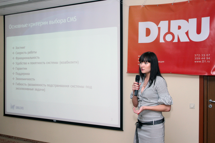 В программе семинара прозвучали доклады Александра Венедюхина из RU-CENTER ("Домен .РФ, CMS и онлайн-сервисы: проблемы и решения", "Блогостроительство: корпоративный блог"), Сергея Баукина, RU-CENTER ("Домен зарегистрирован, хостинг заказан. Что дальше?"), Ильи Крохалева, дизайн-студия D1.RU ("Разработка сайта после выбора CMS. Поисковая оптимизация сайтов или реклама по ключевым словам. Что выбрать?") и мои (мастер-класс по UMI.CMS, а также доклад о поведенческих технологиях).