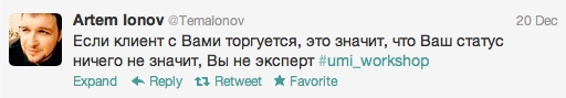 20 декабря 2012 состоялся первый официальный UMI.Workshop нового формата в Санкт-Петербурге. Первой принимающей стороной стали мы сами, и я решил прочитать свою новую лекцию о продажах сайтов «Как начать делать план и перестать париться» (видео).
