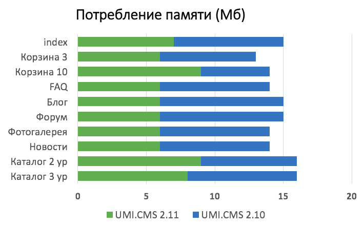 Новая версия UMI.CMS позволит обслужить большее количество посетителей сайта при тех же серверных мощностях, а при использовании облачных хостингов снизит стоимость отображения страниц вашего сайта за счет уменьшения потребления памяти, нагрузки на центральный процессор и количества обращений к жесткому дистку.
