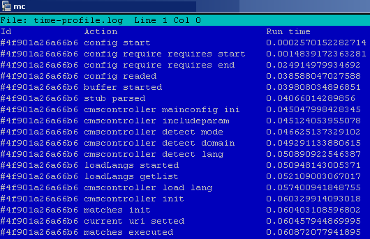 Профайлер показывает, сколько времени (в миллисекундах) занимает та или иная операция глубоко внутри UMI.CMS, а так же сколько при этом потребляется оперативной памяти. Профайлер имеет несколько уровней детализации, позволяя как окинуть взглядом общую картину, так и отслеживать буквально каждый запрос к БД.
