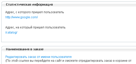 В заказе сохраняется информация о том, на какую страницу сайта (landing page) впервые пришёл этот покупатель. Это может быть полезно для анализа рекламных кампаний. Администратору сайта теперь доступна возможность редактировать и дополнять заказы от имени пользователя.
