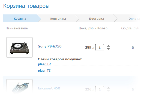 Новый интерфейс корзины разработан с учетом современных канонов юзабилити в электронной коммерции, которым мы всегда советуем следовать для достижения максимальной конверсии интернет-магазина. Со страницы корзины убраны все лишние блоки (социальные сети, новости, баннеры и т.п.), чтобы не отвлекать внимание клиента от процесса оформления заказа. В обновленной корзине появилась возможность добавить к заказу сопутствующие товары, не покидая корзину. Рядом с каждым выбранным товаром в корзине теперь выводится его изображение. Реализован механизм оформления заказа по шагам, а также встроен функционал для ускоренного оформления заказа, что делает процесс покупки в интернет-магазине простым и понятным.