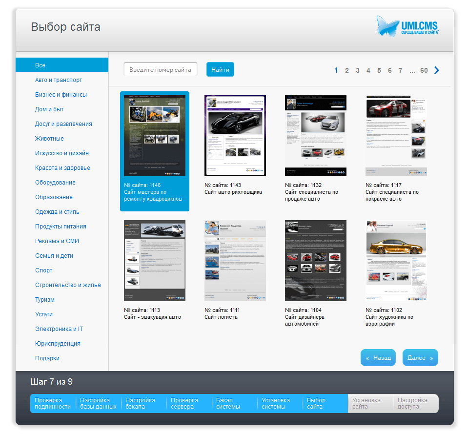 Главным нововведением релиза 2.9 стали готовые сайты «в коробке». В дополнение к системе управления мы рады предложить абсолютно бесплатно любой из 500 готовых сайтов и интернет-магазинов. Теперь пользователи UMI.CMS смогут быстро, просто и без дополнительных вложений создать свой сайт. Чтобы установить готовое решение на свой хостинг, достаточно просто запустить инсталлятор системы и на одном из шагов установки выбрать подходящий сайт. Посмотреть все готовые сайты, не устанавливая систему, можно в онлайн демо-центре.