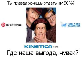 А для тех, кто не любит смотреть, но любит читать, излагаю в эпистолярном жанре. Как вы помните, в конце лета 2008-го вокруг нарастала «предкризисная» истерия, мол «вот-вот шарахнет, и мало не покажется». Главный офис «Кинетики» находится в Барнауле («почётное» 37-е место в рейтинге «Яндекс.Городов»), и было тем более совершенно непонятно, как этот кризис коснётся веба, просто не у кого было спросить - до ближайшего гуру более 3 000 вёрст... :-) Вплоть до сегодняшнего дня, пара семинаров Яндекса по контекстной рекламе были не то, чтобы «единственными серьёзными» интернет-событиями на Алтае, это, на самом деле, были единственные мероприятия подобного рода. Поэтому новость о том, что в Новосибирске планируется первая «Интернет-неделя» воодушевила, и собственно, с посещения этой конференции и начало появляться видение того, что следует предпринимать для развития нашего бизнеса. Домой я привёз то, за чем специально не приезжал, но решил непременно изучить на предмет внедрения в нашей веб-студии: рекламные материалы трёх ведущих коробочных CMS: 1С-Битрикс, NetCat и UMI.CMS. Для изучения 2-ух первых мне были доступны демо-версии на сайтах, а с Юми была история получше - по акции выдали коммерческую лицензию с правом установки реальному клиенту. Нетрудно догадаться, с изучения какой CMS я начал «раскрывать тему коробок».